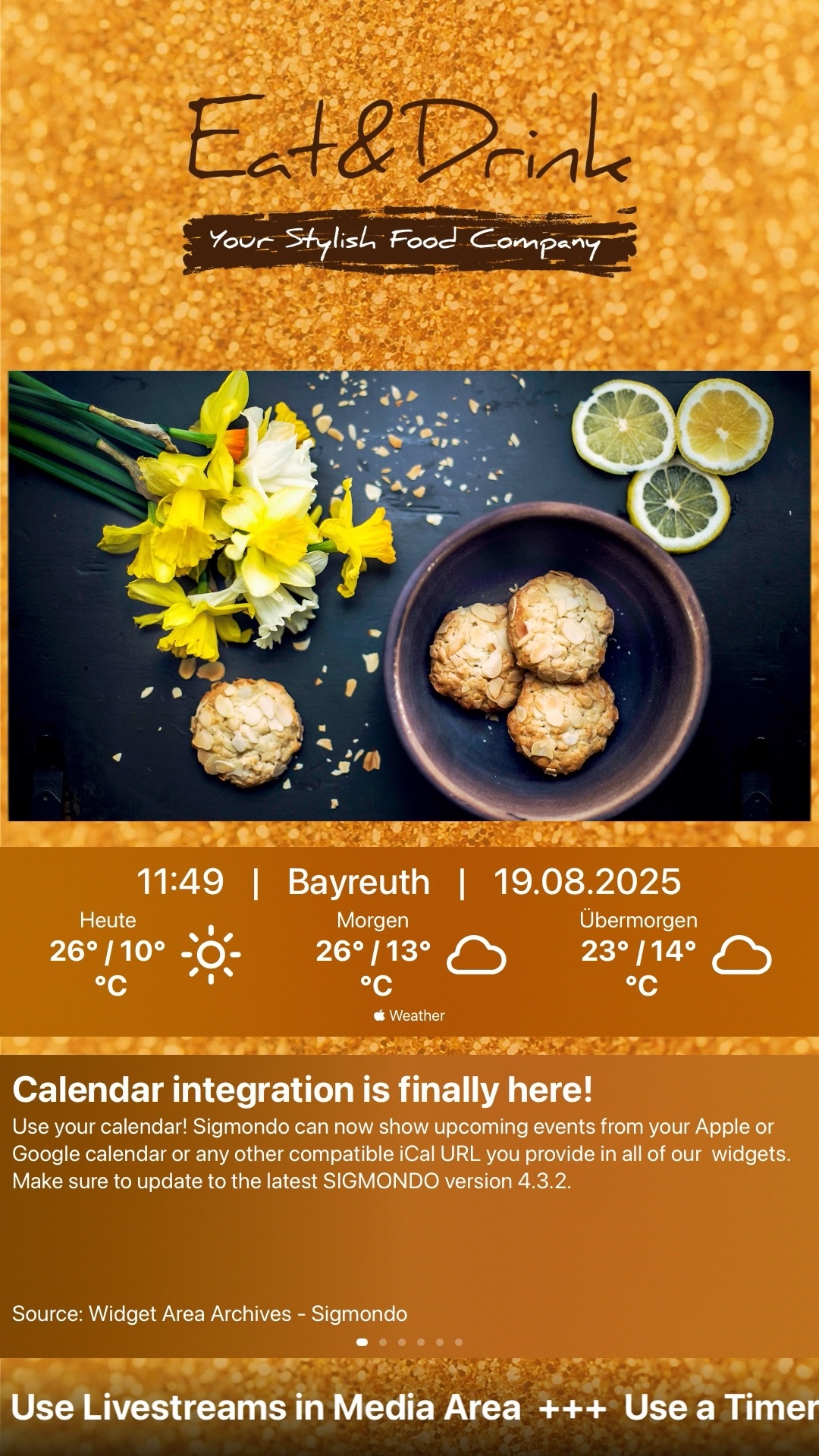 Choose from different layouts (Classic Layout with one widgets and a bottom ticker, Plain fullscreen and fullscreen with ticker)