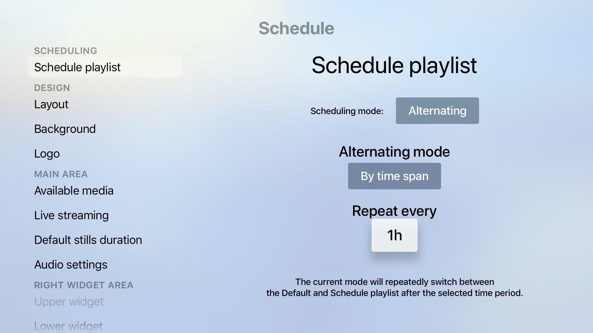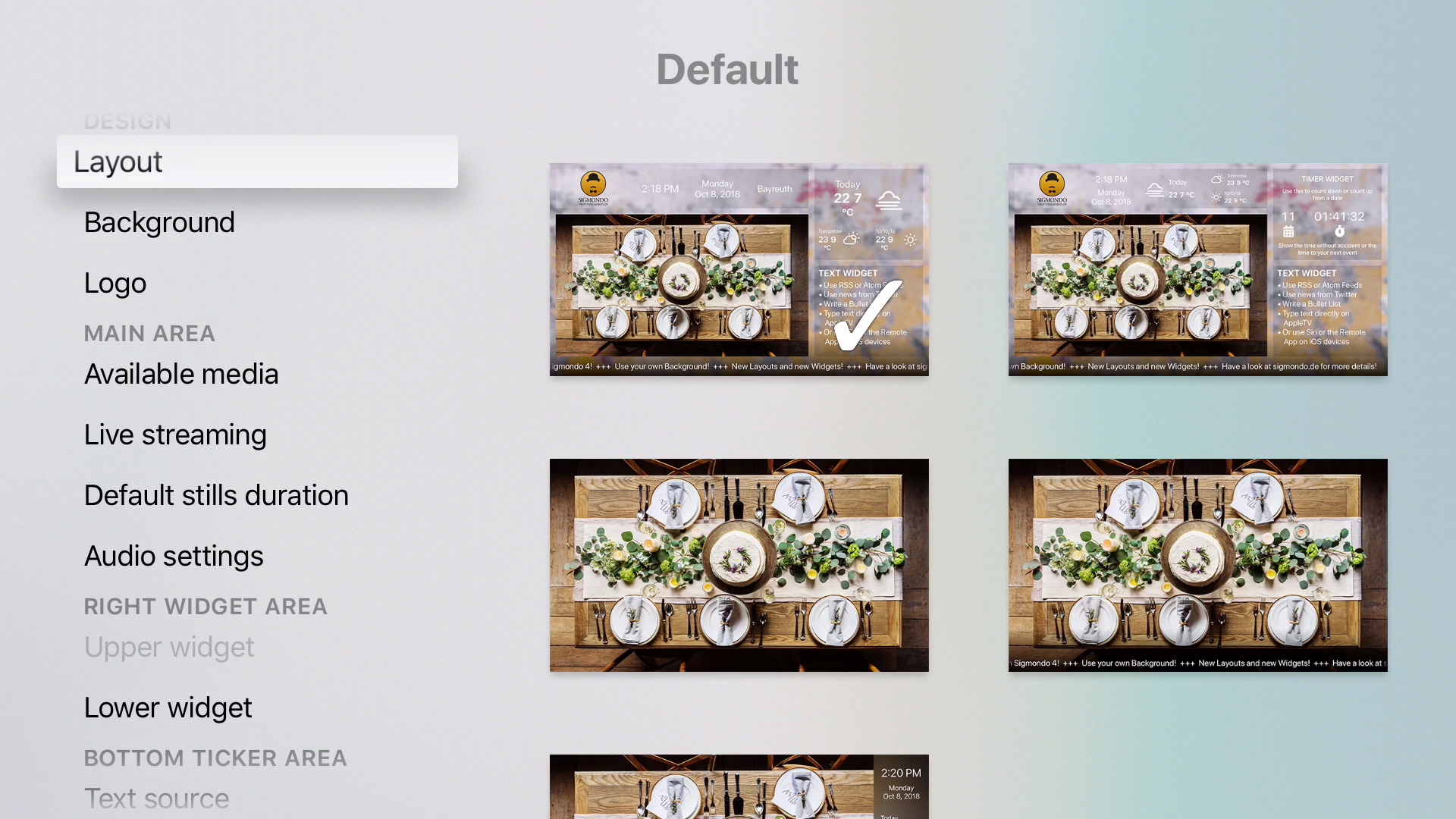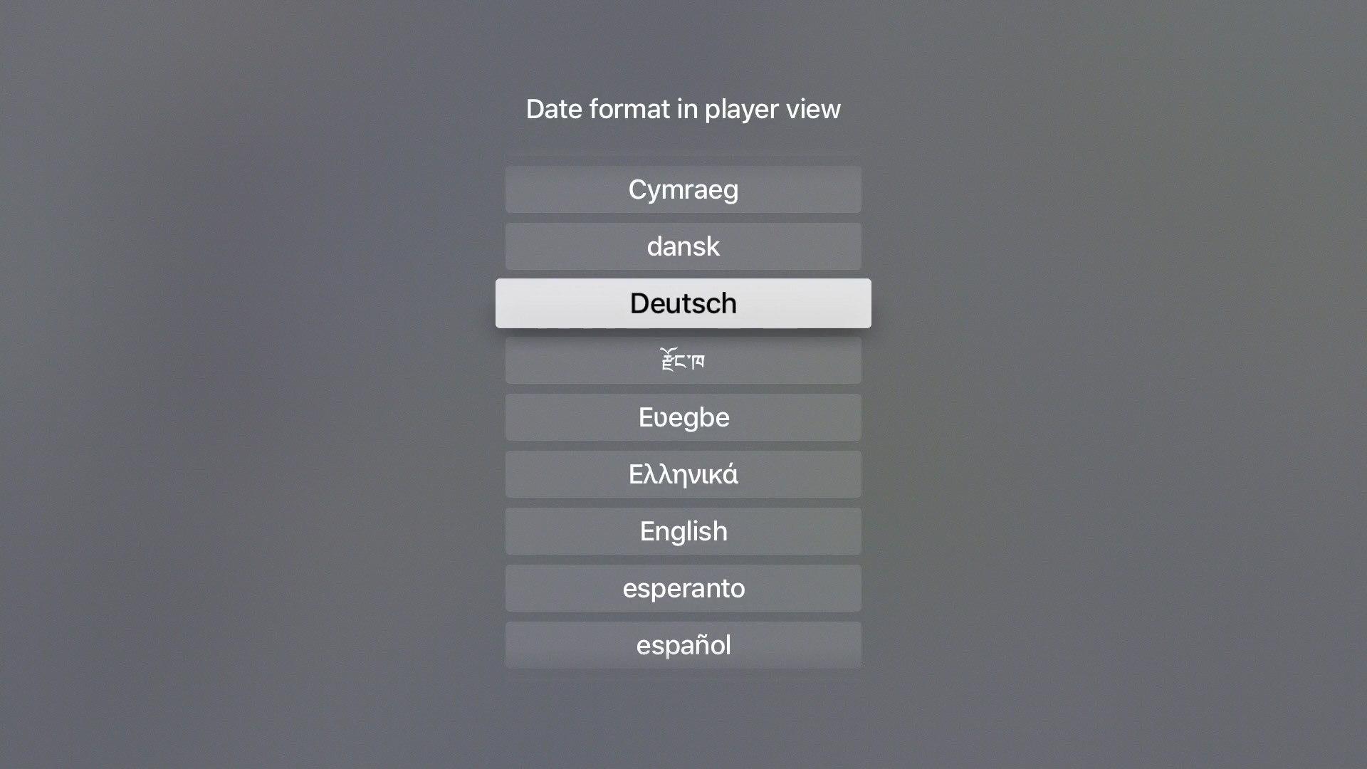 Sigmondo gets your location and language information from the settings of your Apple TV. And it will show the current date and time, your location and weather forecast in that language. This is a really amazing feature!